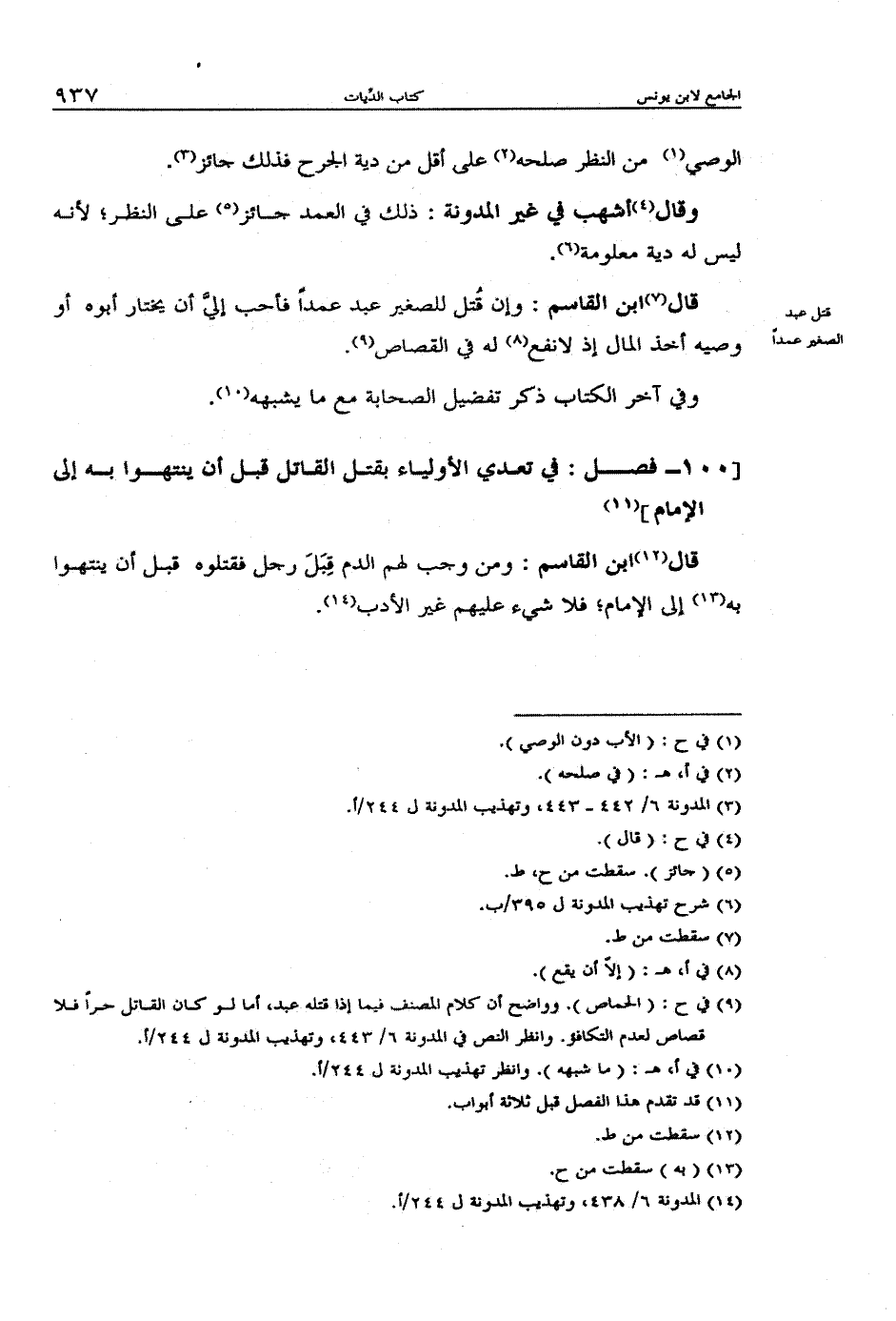قال ابن القاسم: وإن قُتل للصغير عبد عمداً فأحب إليَّ أن يختار أبوه أو