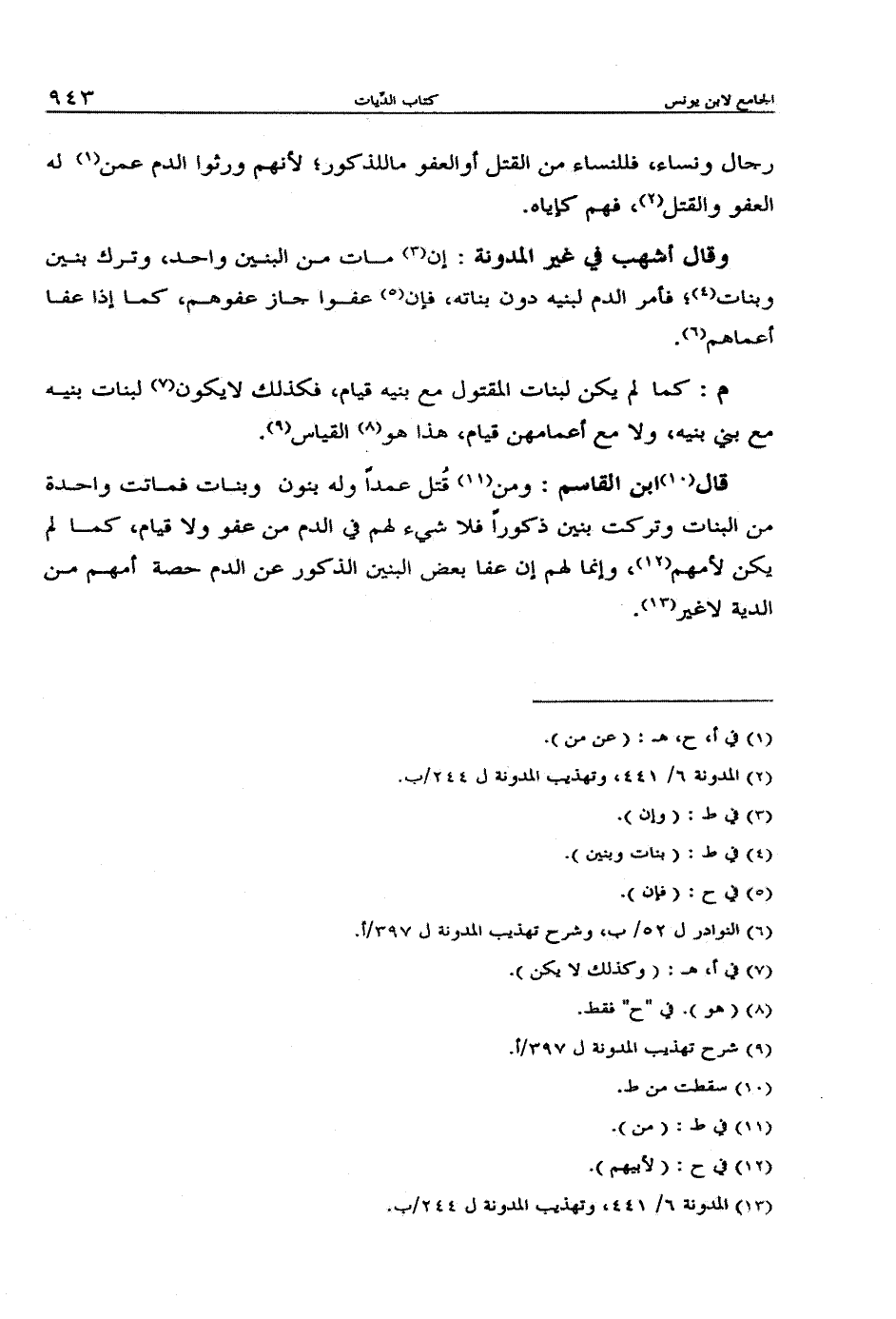من البنات وتركت بنين ذكوراً فلا شيء لهم في الدم من عفو ولا قيام, كما لم