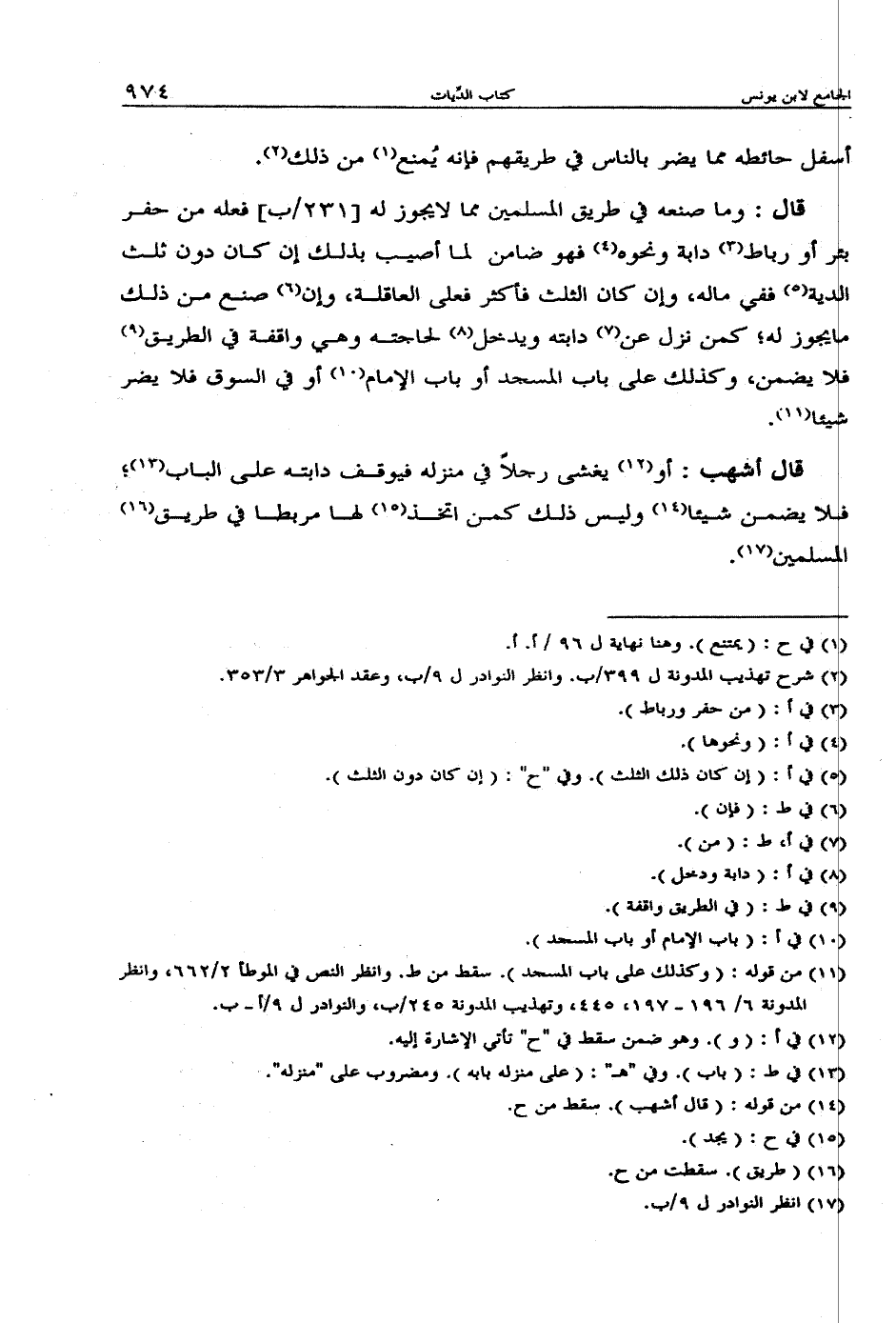 قال أشهب: أو يغشى رجلاً في منزله فيوقف دابته على الباب؛ فلا يضمن شيئاً وليس ذلك كمن اتخذ لها مربطا في طريق المسلمين.