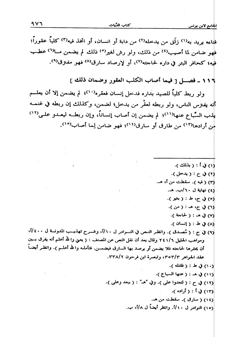 116 - فصل [فيما أصاب الكلب العقور وضمان ذلك]