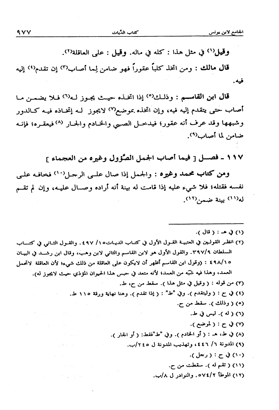 117 - فصل [فيما أصاب الجمل الصؤول وغيره من العجماء]