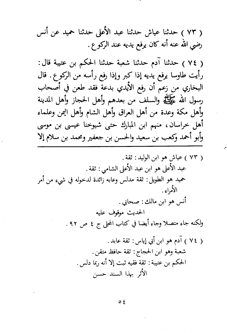 73 - حَدَّثَنَا عَيَّاشٌ , حَدَّثَنَا عَبْدُ الْأَعْلَى , حَدَّثَنَا حُمَيْدٌ , عَنْ أَنَسٍ أَنَّهُ كَانَ §يَرْفَعُ يَدَيْهِ عِنْدَ الرُّكُوعِ