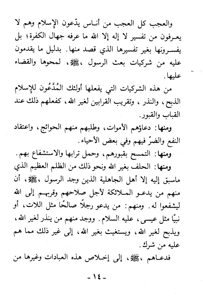والعجب كل العجب من أناس يدعون الإسلام وهم لا يعرفون من تفسير لا إله إلا الله ما عرفه جهال الكفرة، بل يفسرونها بغير تفسيرها الذي قصد منها. بدليل ما يقدمون عليه من شركيات بعث الرسول - صلى الله عليه وسلم - لمحوها والقضاء عليها.