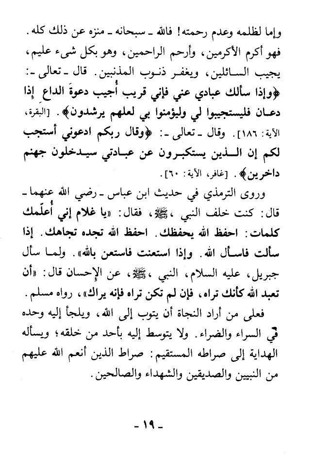 فعلى من أراد النجاة أن يتوب إلى الله، ويلجأ إليه وحده في السراء والضراء. ولا يتوسط إليه بأحد من خلقه؛ ويسأله الهداية إلى صراطه المستقيم: صراط الذين أنعم الله عليهم من النبيين والصديقين والشهداء والصالحين.