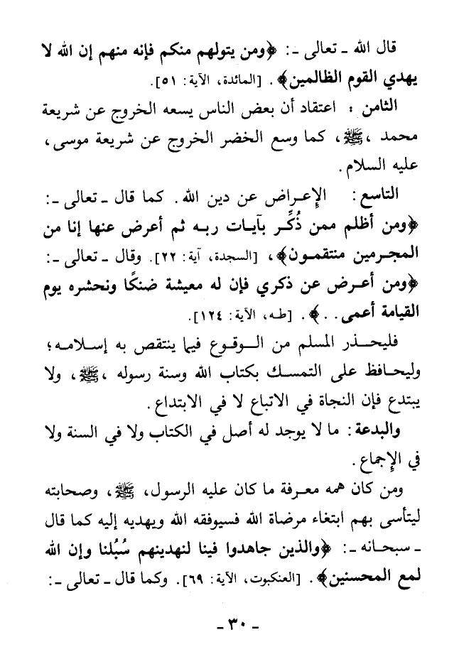 فليحذر المسلم من الوقوع فيما ينتقص به إسلامه، وليحافظ على التمسك بكتاب الله وسنة رسوله - صلى الله عليه وسلم - ولا يبتدع فإن النجاة في الاتباع لا في الابتداع.