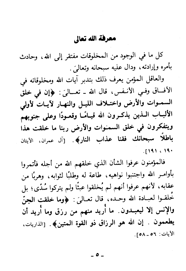 فالمؤمنون عرفوا الشأن الذي خلقهم الله من أجله فأتمروا بأوامر الله واجتنبوا نواهيه، طاعة له وطلبًا لثوابه، وهربًا من عقابه، لأنهم عرفوا أنهم لم يُخلقوا عبثًا ولم يتركوا سُدًى، بل خُلقوا لعبادة الله وحده، قال تعالى: {وَمَا خَلَقْتُ الْجِنَّ وَالْإِنْسَ إِلَّا لِيَعْبُدُونِ * مَا أُرِيدُ مِنْهُمْ مِنْ رِزْقٍ وَمَا أُرِيدُ أَنْ يُطْعِمُونِ * إِنَّ اللَّهَ هُوَ الرَّزَّاقُ ذُو الْقُوَّةِ الْمَتِينُ} [الذاريات الآيات: 56 - 58].