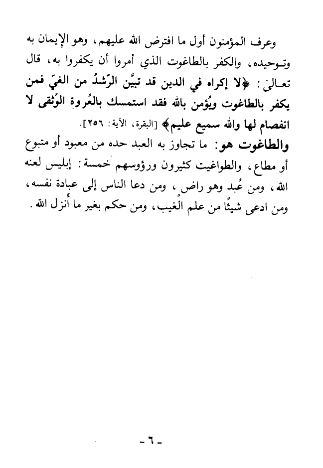 وعرف المؤمنون أول ما افترض الله عليهم، وهو الإيمان به وتوحيده، والكفر بالطاغوت الذي أمروا أن يكفروا به، قال تعالى: {لَا إِكْرَاهَ فِي الدِّينِ قَدْ تَبَيَّنَ الرُّشْدُ مِنَ الْغَيِّ فَمَنْ يَكْفُرْ بِالطَّاغُوتِ وَيُؤْمِنْ بِاللَّهِ فَقَدِ اسْتَمْسَكَ بِالْعُرْوَةِ الْوُثْقَى لَا انْفِصَامَ لَهَا وَاللَّهُ سَمِيعٌ عَلِيمٌ} [البقرة الآية: 256].