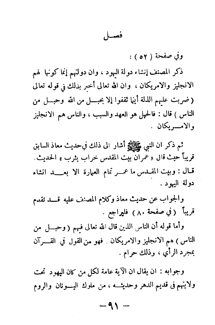 وأما قوله إن الناس الذين قال الله تعالى فيهم (وحبل من الناس) هم الإنجليز والأمريكان. فهو من القول في القرآن بمجرد الرأي, وذلك حرام.