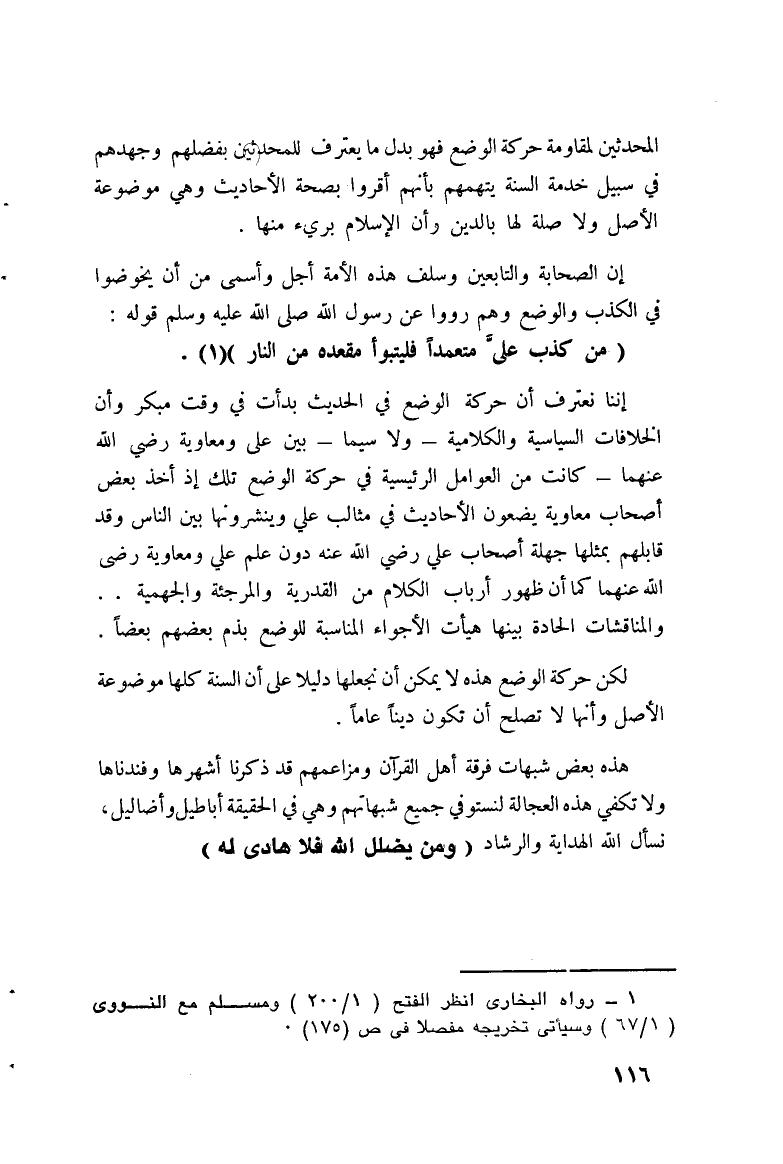(¬1) رواه البخاري، انظر " فتح الباري ": 1/ 200 و " مسلم بشرح النووي ": 1/ 67. وسيأتي تخريجه مُفَصَّلاً في ص 175.