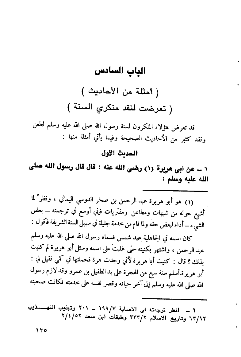 الباب السادس: أمثلة من الأحاديث تعرَّضت لنقد مُنْكِرِي السُنَّة: