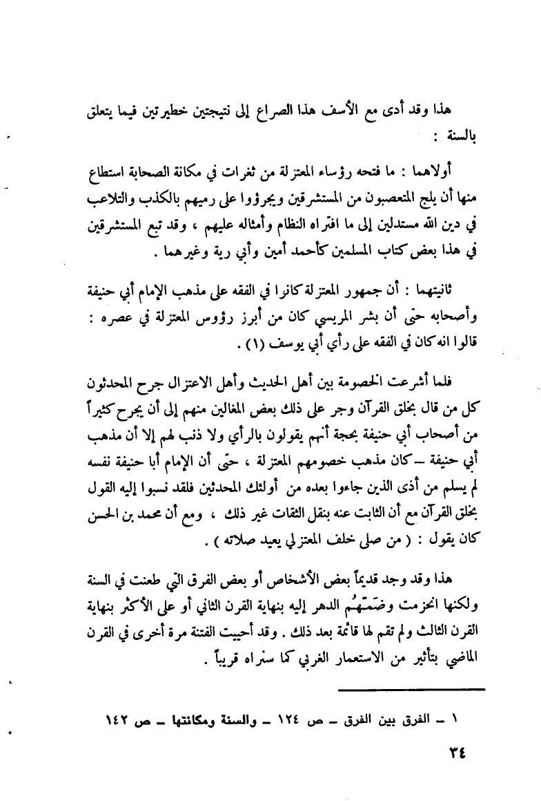 (¬1) " الفَرْقُ بين الفِرَقِ ": ص 124. و " السُنَّة ومكانتها ": ص 142.