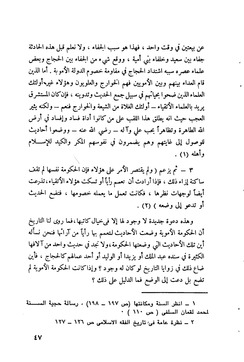 (¬1) انظر " السُنَّة ومكانتها ": ص 197، 198. " رسالة حُجِيَّة السُنَّة " لمحمد لقمان السلفي ": ص 110.