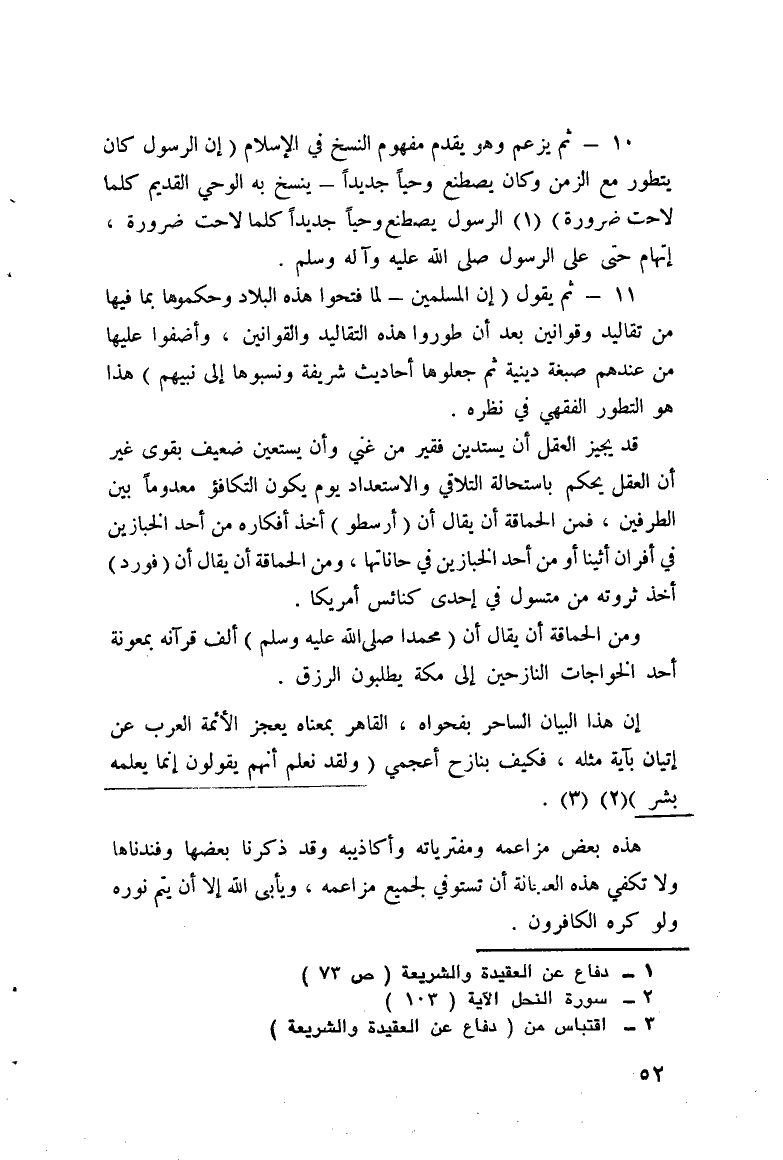 (¬3) اقتباس من " دفاع عن العقيدة والشريعة ".