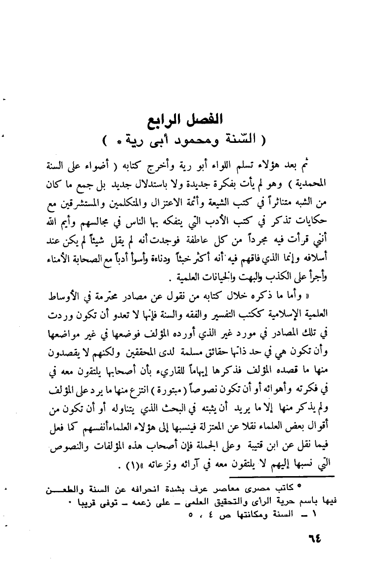 الفصل الرابع: السُنَّة ومحمود أبو رية: (*)