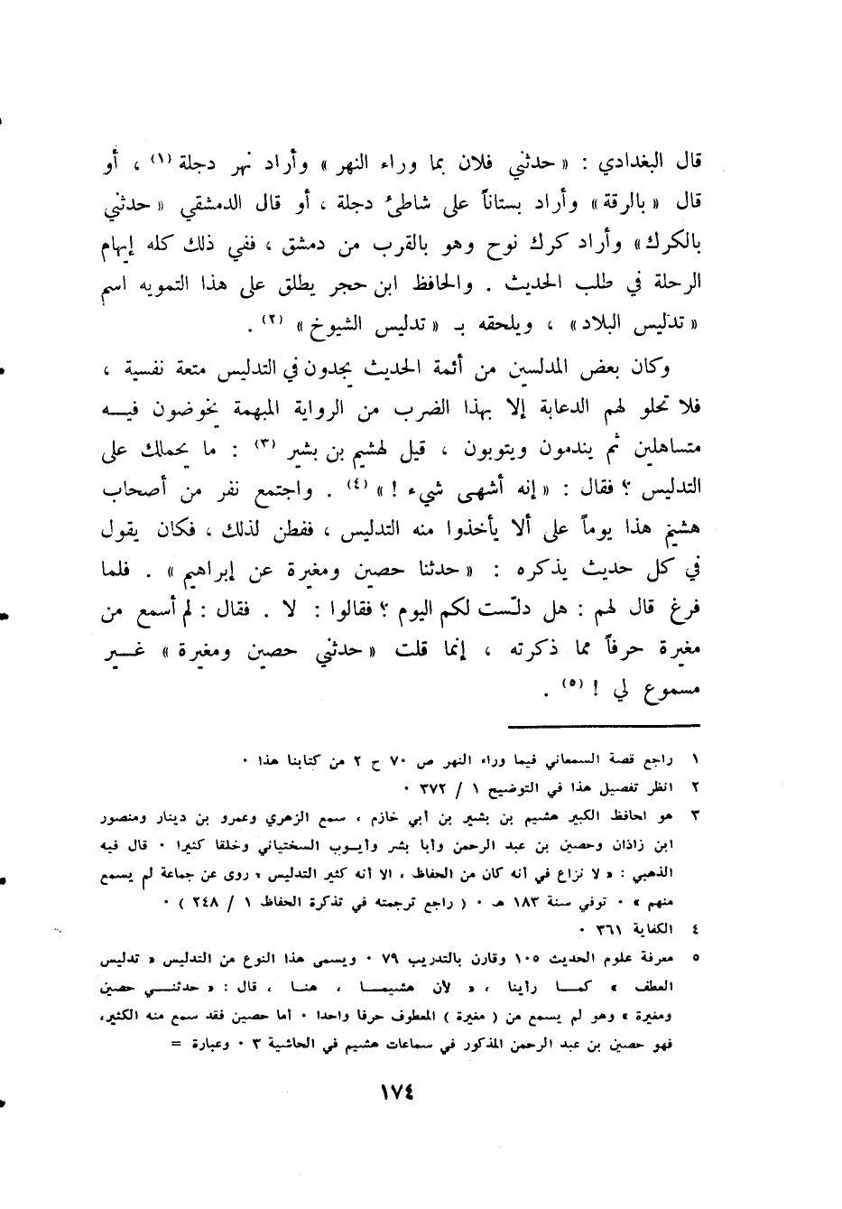 (¬5) " معرفة علوم الحديث ": ص 105 وقارن بـ " التدريب ": ص 79. ويسمى هذا النوع من التدليس «تدليس العطف»، كما رأينا، لأن هُشيمًا هنا قال: «حَدَّثَنِي حُصَيْنٌ وَمُغِيرَةُ» وهو لم يسمع من (مغيرة) المعطوف حرفًا واحدًا. أما حصين فقد سمع منه الكثير، فهو حصين بن عبد الرحمن المذكور في سماعات هُشيم في الحاشية 3. وعبارة =