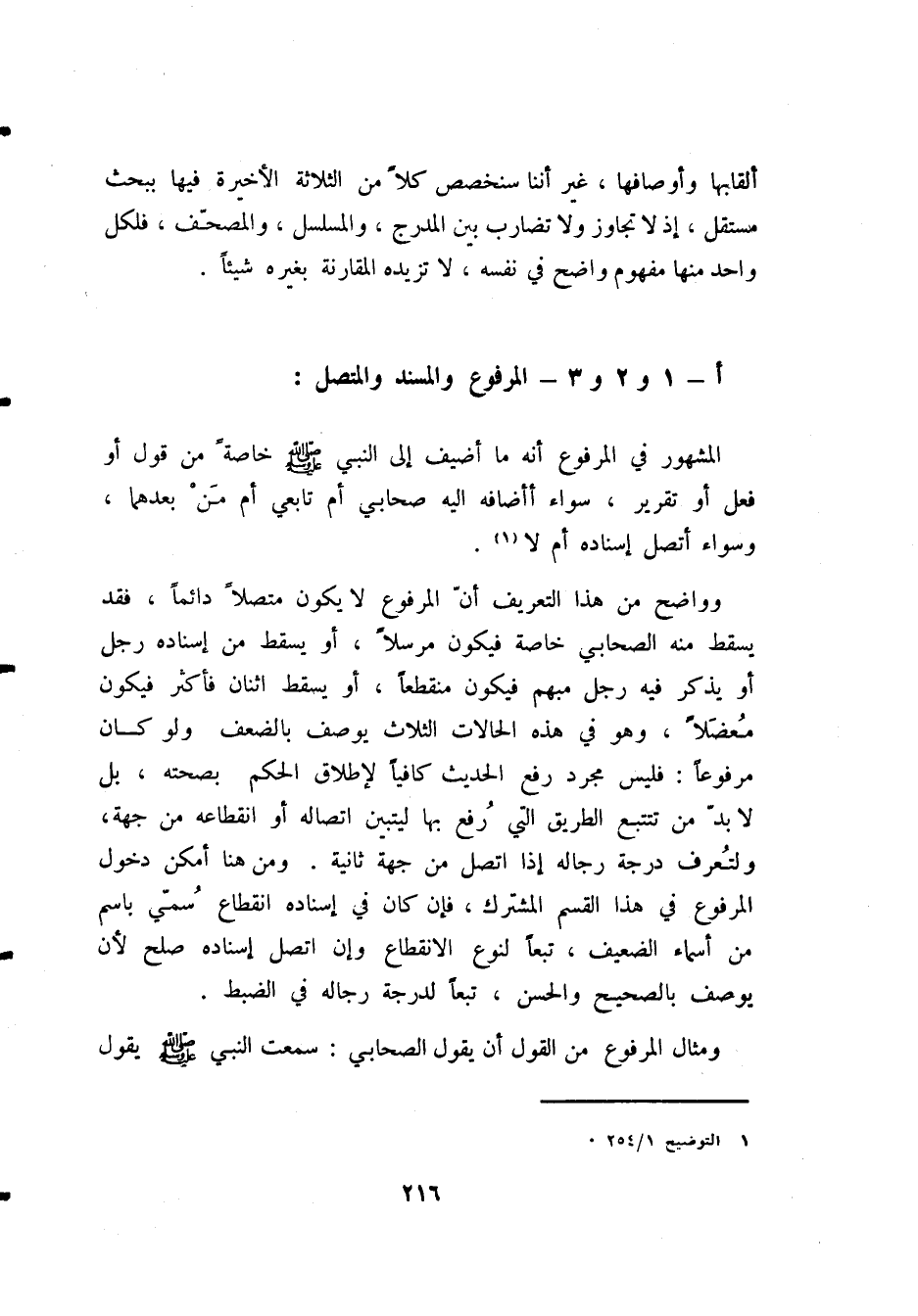 أ - 1 و 2 و 3 - المَرْفُوعُ وَالمُسْنَدُ وَالمُتَّصِلُ: