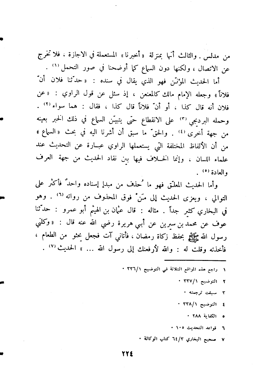 وحمله البَرْدِيجِيُّ (¬3) على الانقطاع حتى يتبين السماع في ذلك الخبر بعينه من جهة أخرى (¬4). والحق ما سبق أن أشرنا إليه في بحث (السماع) من أن الألفاظ المختلفة التي يستعملها الراوي عبارة عن التحديث عند علماء اللسان. وإنما الخلاف فيها بين نقاد الحديث من جهة العرف والعادة (¬5).