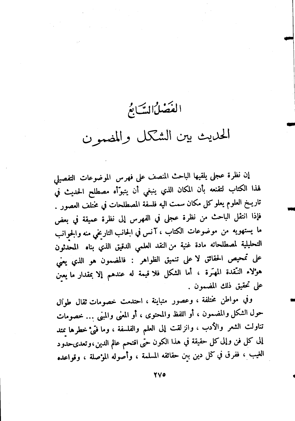 الفَصْلُ السَّابِعُ: الحَدِيثُ بَيْنَ الشَّكْلِ وَالمَضْمُونِ: