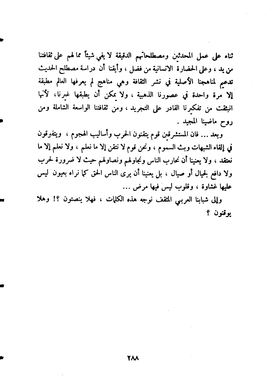 وإلى شبابنا العربي المثقف نوجه هذه الكلمات، فهلا ينصتون؟! وهلا يوقنون؟
