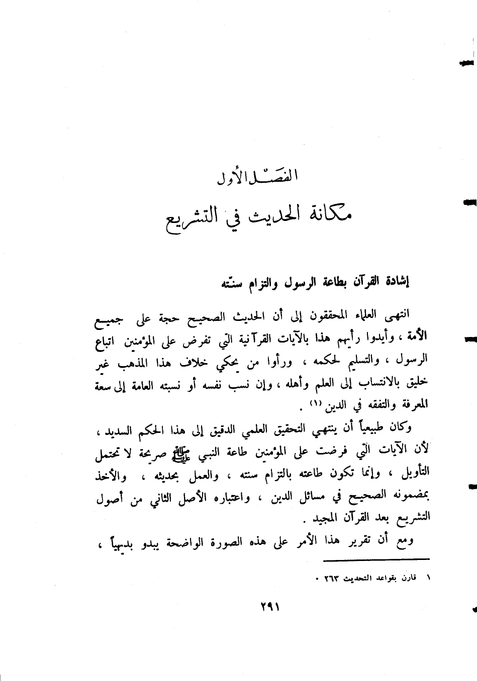 الفَصْلُ الأَوَّلُ: مَكَانَةُ الحَدِيثِ فِي التَّشْرِيعِ: