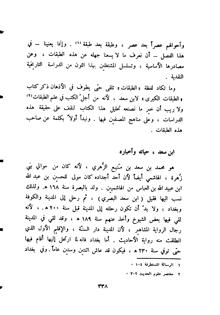 وما تكاد لفظة «الطبقات» تلقى حتى يطوف في الأذهان ذكر كتاب " الطبقات الكبرى " لابن سعد، لأنه من أول الكتب في علم الطبقات (¬2)، ولا ريب أن خير ما نصنعه تحليل هذا الكتاب لنقف على حقيقة هذه الدراسات، وعلى مناهج المصنفين فيها. ونبدأ أولاً بكلمة عن صاحب هذه " الطبقات ".