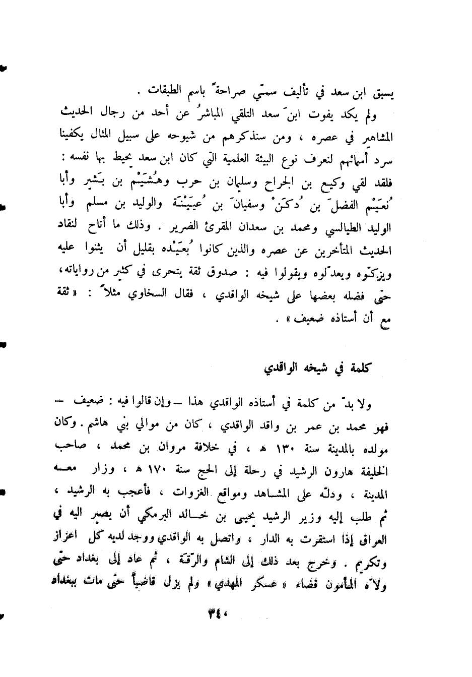 كَلِمَةٌ فِي شَيْخِهِ الوَاقِدِي: