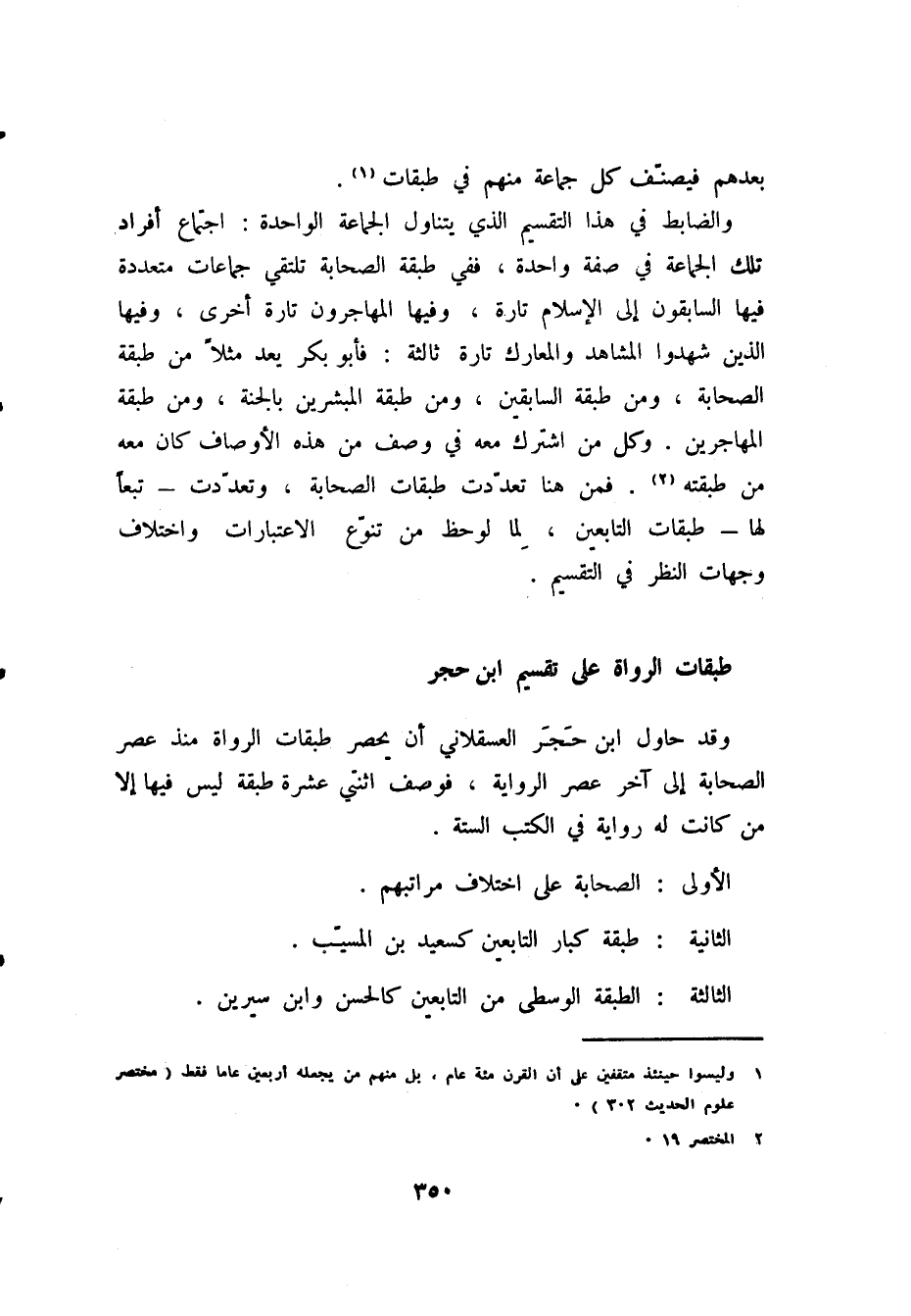 وقد حاول ابن حجر العسقلاني أن يحصر طبقات الرواة منذ عصر الصحابة إلى آخر عصر الرواية، فوصف اثنتي عشرة طبقة ليس فيها إلا من كانت له رواية في " الكتب الستة ".