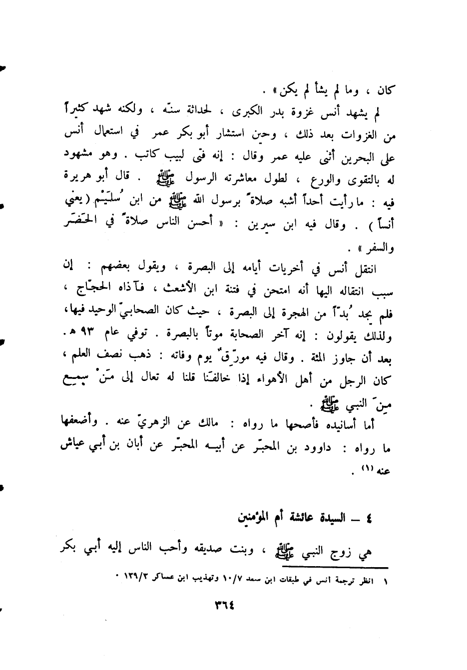 (¬1) انظر ترجمة أنس في " طبقات ابن سعد: 7/ 10، و" تهذيب ابن عساكر ": 3/ 139.