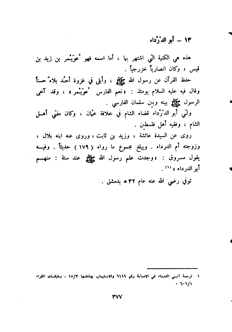 (¬1) ترجمة أبي الدرداء في " الإصابة ": رقم 6119، و" الاستيعاب " بهامشها: 3/ 15، و" طبقات القراء ": 1/ 606.
