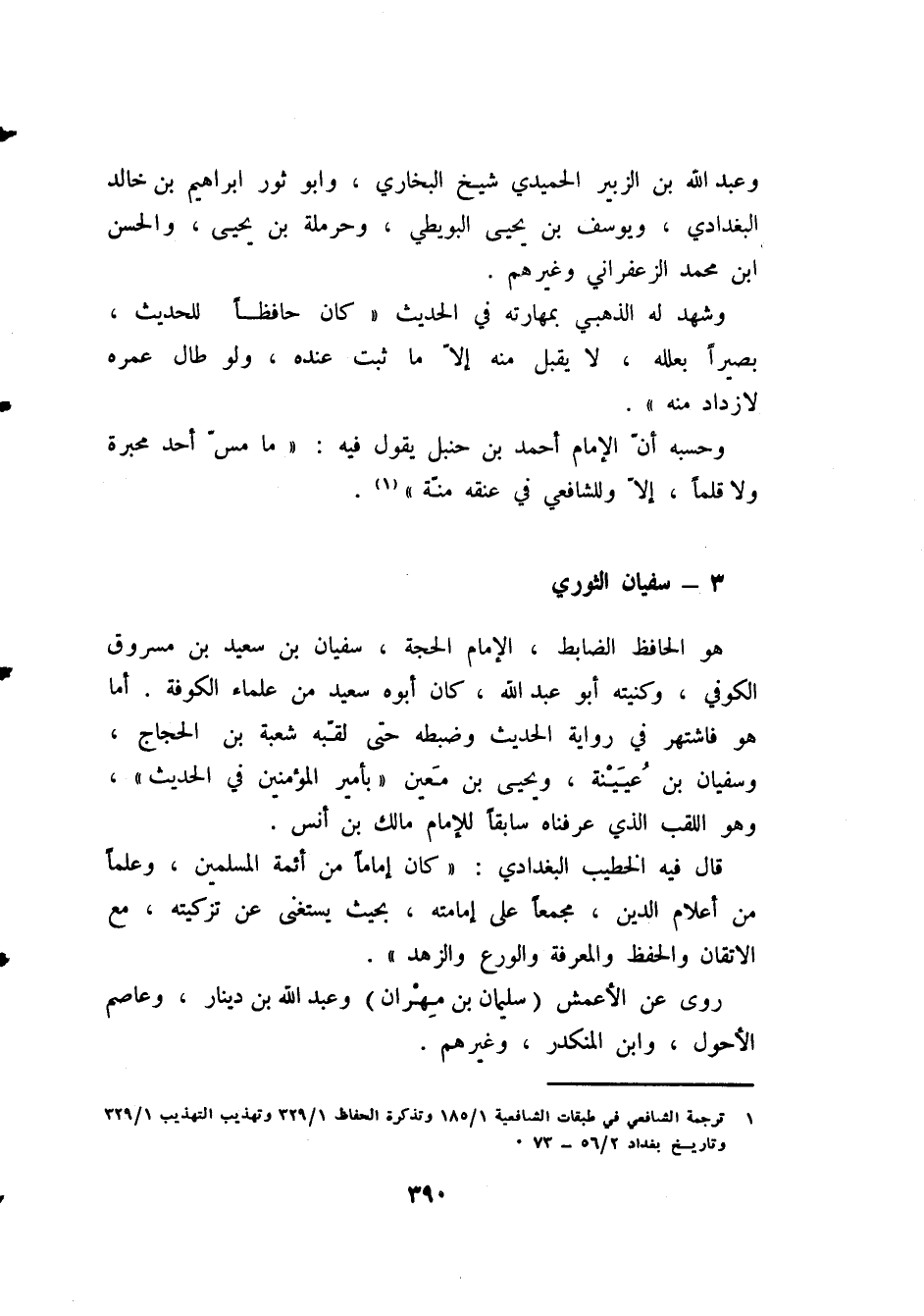 (¬1) ترجمة الشافعي في " طبقات الشافعية ": 1/ 185، و" تذكرة الحفاظ ": 1/ 329، و" تهذيب التهذيب ": 1/ 329، و" تاريخ بغداد ": 2/ 56 - 73.