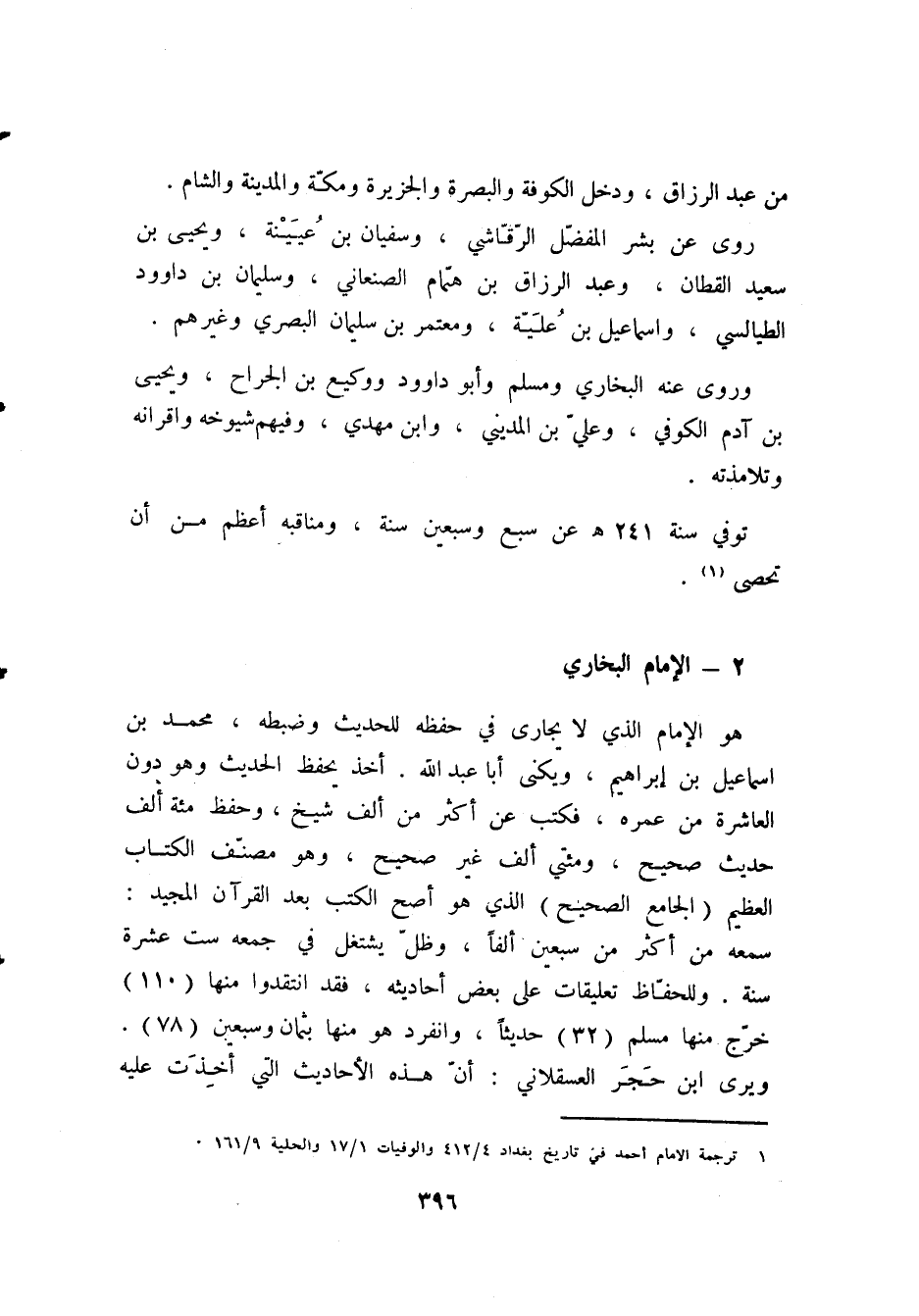 هو الإمام الذي لا يجارى في حفظه للحديث وضبطه، محمد بن إسماعيل بن إبراهيم، ويكنى أبا عبد الله. أخذ يحفظ الحديث وهو دون العاشرة من عمره، فكتب عن أكثر من ألف شيخ، وحفظ مائة ألف حديث صحيح، ومئتي ألف غير صحيح، وهو مصنف الكتاب العظيم " الجامع الصحيح " الذي هو أصح الكتب بعد القرآن المجيد: سمعه من أكثر من سبعين ألفًا، وظل يشتغل في جمعه ست عشرة سَنَةً. وللحفاظ تعليقات على بعض أحاديثه، فقد انتقدوا منها (110) خَرَّجَ منها مسلم (32) حَدِيثًا، وانفرد هو منها بثمان وسبعين (78). ويرى ابن حجر العسقلاني: أن هذه الأحاديث التِي أُخِذَتْ عَلَيْهِ