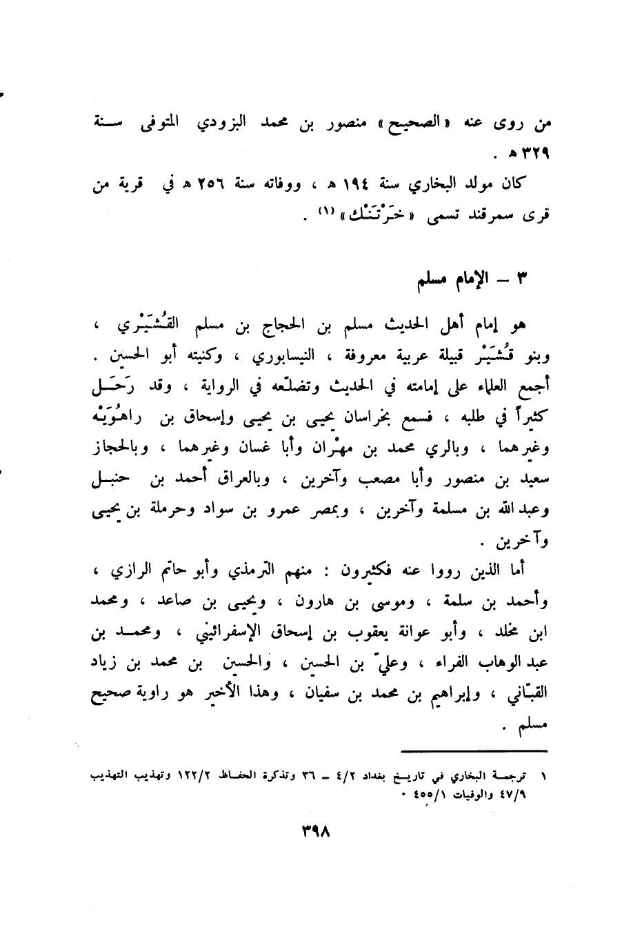(¬1) ترجمة البخاري في " تاريخ بغداد ": 2/ 4 - 26، و" تذكرة الحفاظ ": 2/ 122، و" تهذيب التهذيب ": 9/ 47، و" الوفيات ": 1/ 455.