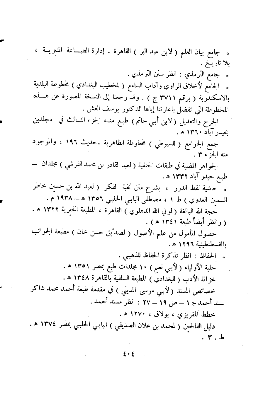 - * جامع بيان العلم " (لابن عبد البر) القاهرة. إدارة الطباعة المنيرية، بلا تاريخ.