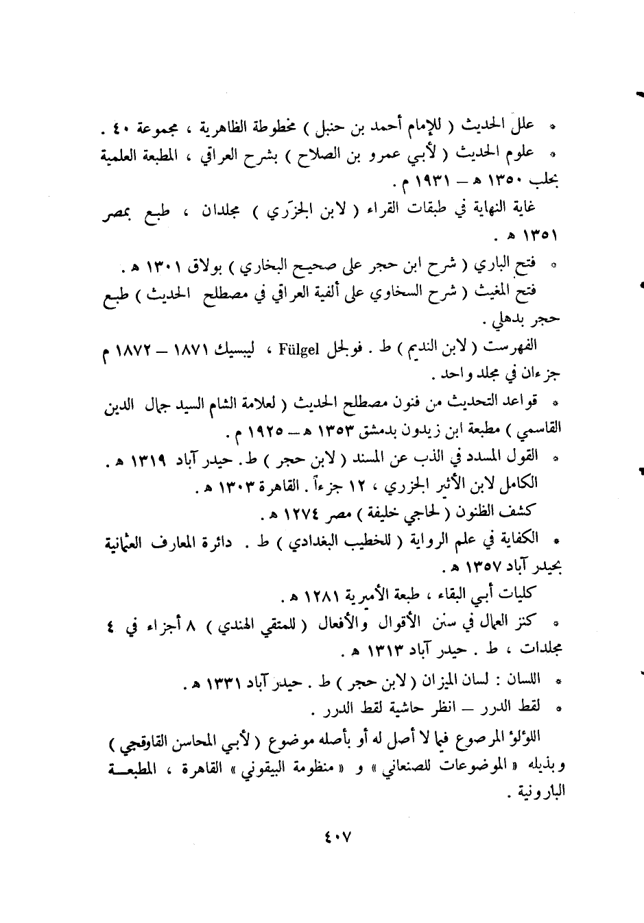 - * " الكفاية في علم الرواية " (للخطيب البغدادي)، ط. دائرة المعارف العثمانية بحيدر آباد: 1357 هـ.