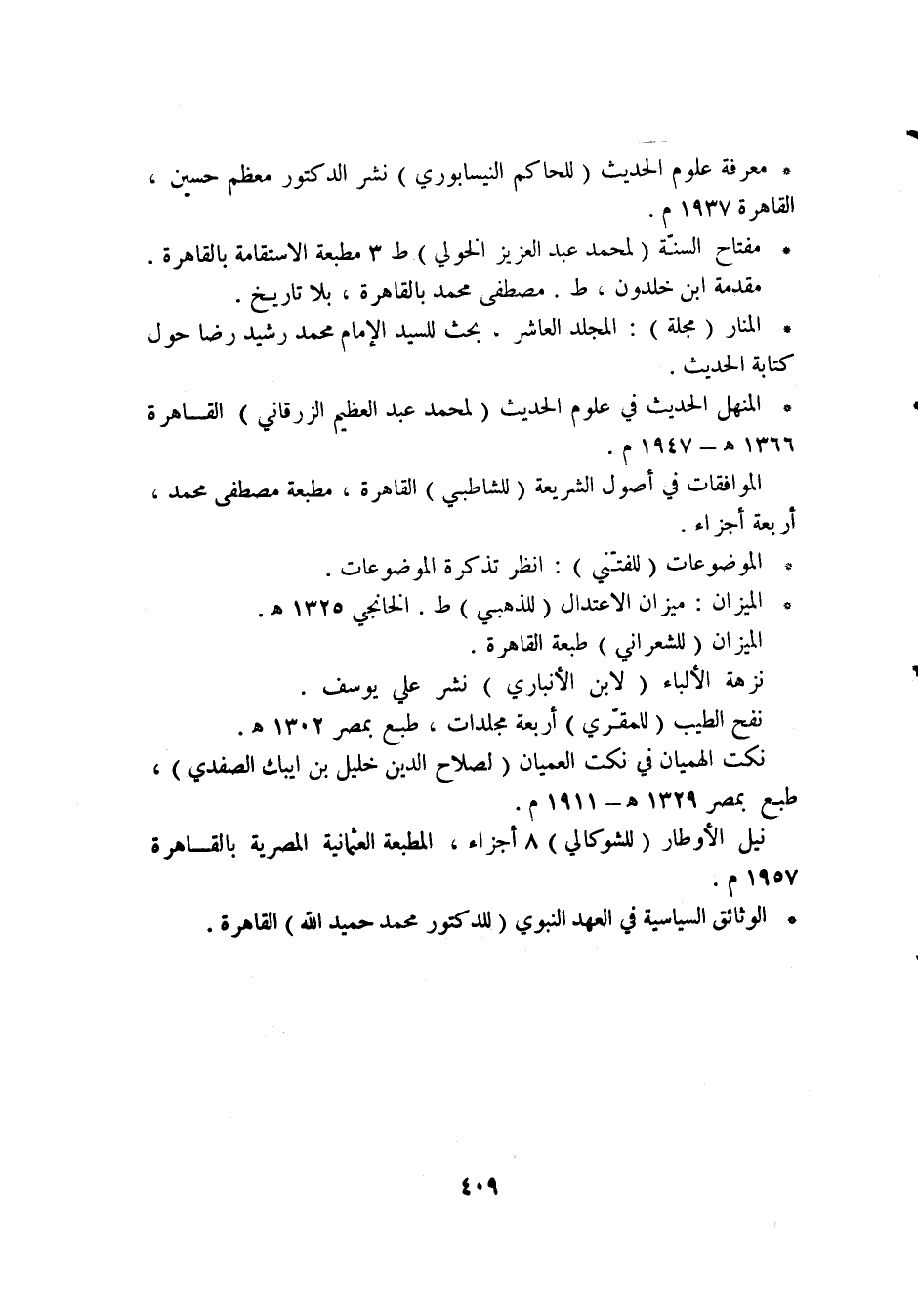 - * " المنهل الحديث في علوم الحديث " (لمحمد عبد العظيم الزرقاني)، القاهرة: 1366 هـ - 1947 م.