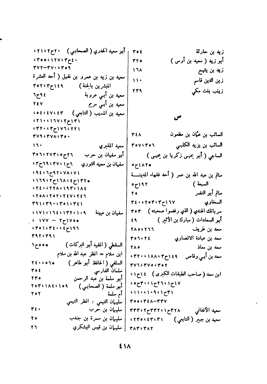 - ابن سعد (صاحب " الطبقات الكبرى "): 14 ح 1، 17 ح 1، 26 ح 1، 30 ح 5، 31 ح 1، 109، 110، 337 - 348، 355.