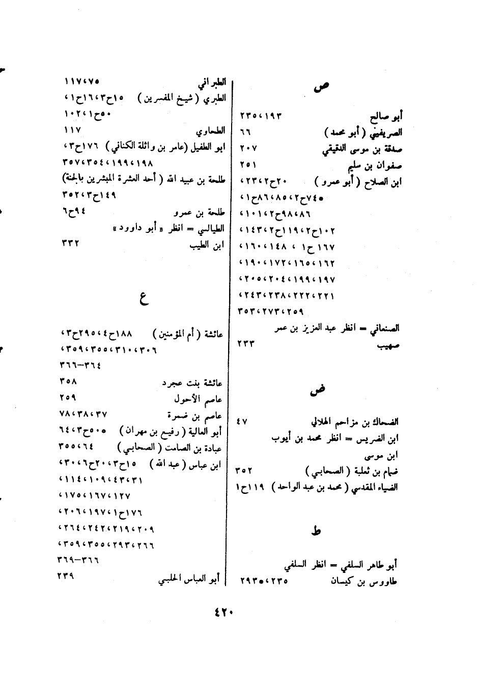 - ابن الصلاح (أبو عمرو): 20 ح 2، 23، * 74 ح 2، 85، 86 ح 1، 86، 98 ح 2، 101، 102 ح 2، 119 ح 2، 143، [148]، 160، 162، 165، 172، 190، 197، 199، 204، 205، 221، 222، 238، 243، 259، 273، 353.
