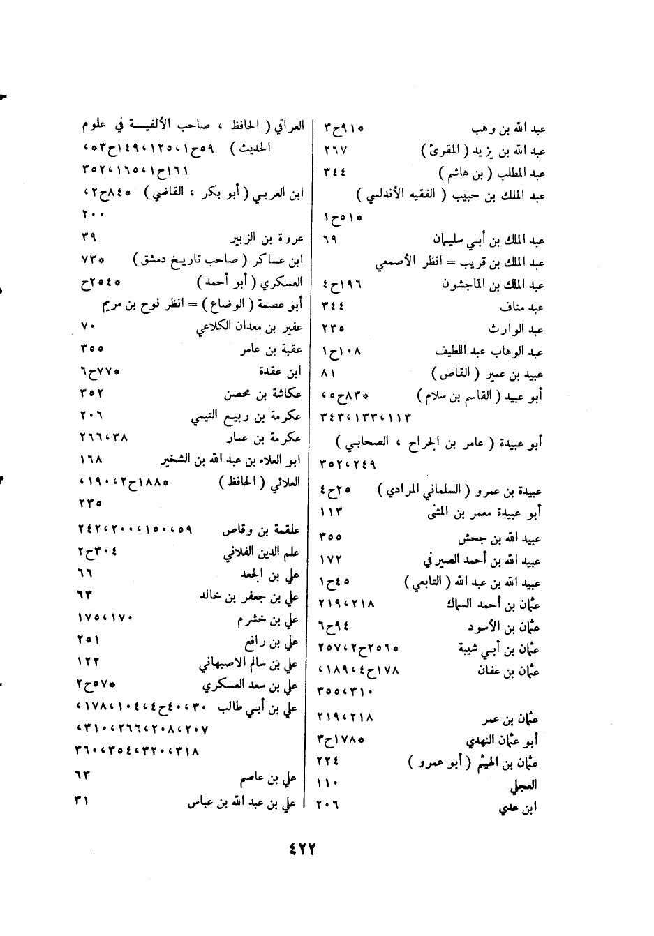 - العراقي (الحافظ، صاحب " الألفية " في علوم الحديث): 59 ح 1، 125، 149 ح 3 *، 161 ح 1، 165، 352.