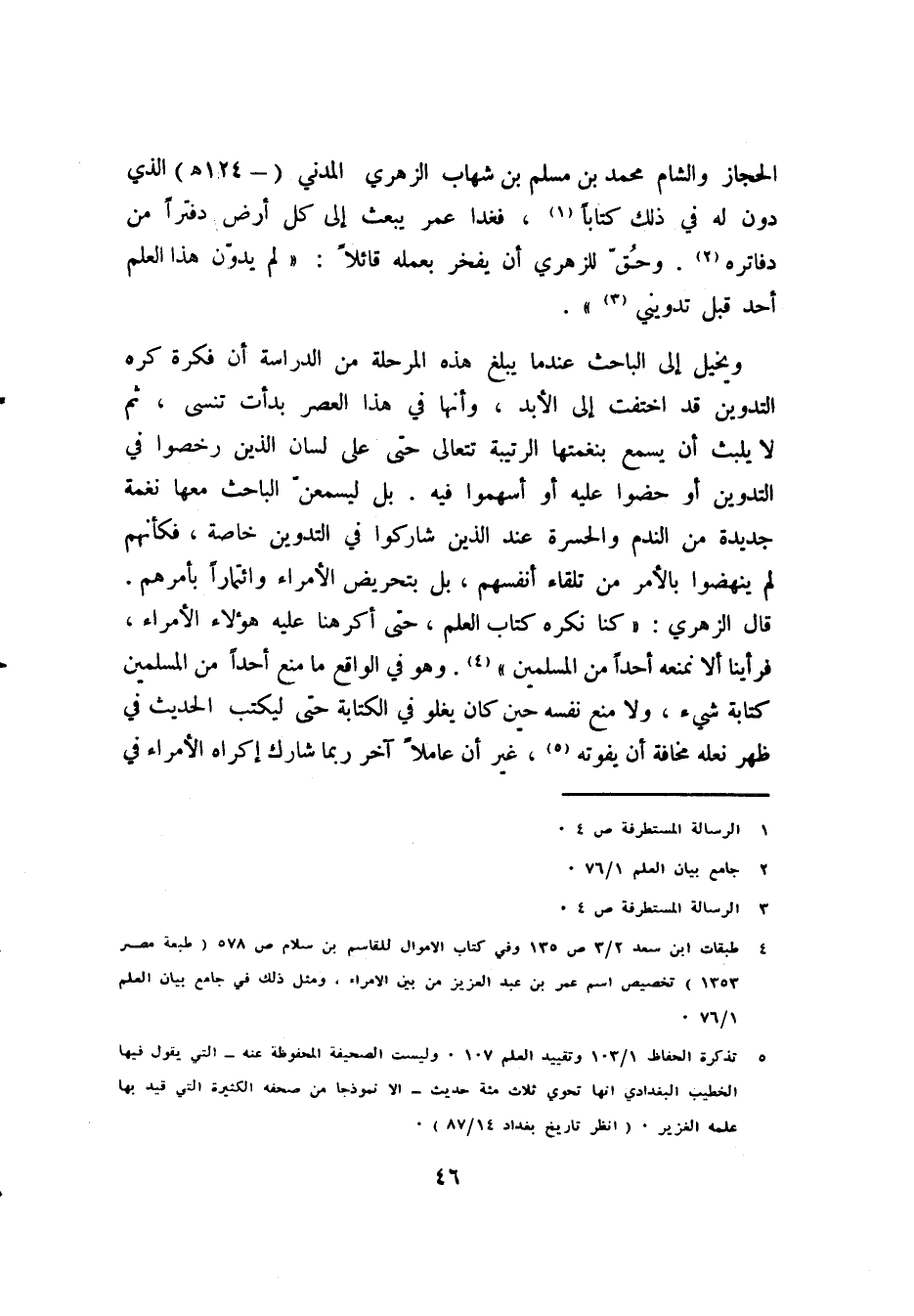 في المدينة المنورة «دَارُ السُنَّةِ» (¬1) التي عَظَّمَ الرسول - صَلََّى اللهُ عَلَيْهِ وَسَلَّمَ - حُرْمَتَهَا ما بين حَرَّتَيْهَا وحماها كله (¬2) نشأ الحديث نشأته الأولى، فكان الصحابة يتناقلونه فيها مشافهة وَتَلْقينًا، وإليهم كان يفزع التابعون ليأخذوه من أفواههم بالتلقين أَيْضًا، فَاتَّسَمَ الحديث - في مطلع فجره - بالطابع الإقليمي. وظلت رحاب المدينة مقدسة في عيون الرُوَّاةِ، وما فتئت تهفو إليها القلوب، لأنها الإقليم المبارك الذي اتسعت فيه آفاق الدعوة الإسلامية بعد الهجرة النَّبَوِيَّةِ. وأضحى أبناء الأقاليم الأخرى إذا حجوا بيت الله الحرام لا يلبثون أن يولوا وجوههم شطر المدينة ليسمعوا من أفواه أهليها (¬3)، وقد يرحلون إليها