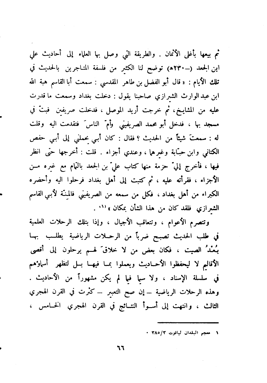 (¬2) ولا يستغرب هذا الكذب ولا الجهل الذي كان سبباً فيه وعِلَّةُ له. حين وصف بهما رجل مغمور كعمر بن موسى لا يعرف عن ترجمته إلاَّ الشيء اليسير. ولكن العجب العجاب من عالم مشهور كالسمعاني (عبد الكريم، المُتَوَفَّى سَنَةَ 563، صاحب كتاب " الأنساب ") إذا صَحَّ ما يرميه به أبو الفرج بن الجوزي من الكذب الصراح والتدليس الأقبح: يوم أمسك بيد شيخ له في بغداد، ثم عَبَرَ معه إلى الضفة الأخرى من نهر عيسى، ثم راح يُحَدِّثُ عنه قائلاً: «سمعتُ من الشيخ فلان فيما وراء النهر كذا وكذا»، يوهم بذلك أنه سمع منه في الموضع المسمَّى «ما وراء النهر».