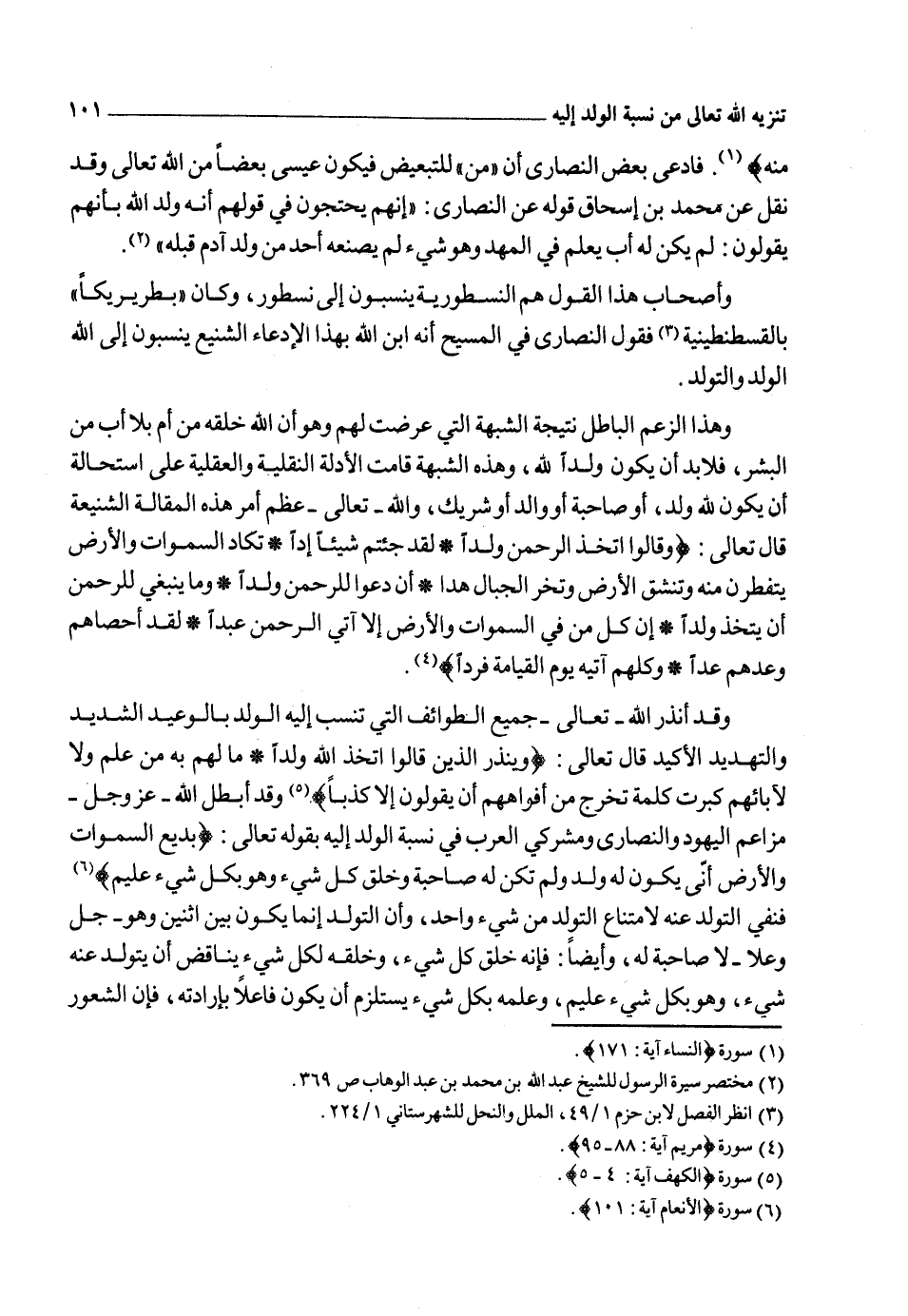 الوجه الأول: أن تلك الولادة لا تصح إلا ممن كانت له صاحبة وينفصل عنه جزء ويحتبس ذلك الجزء في باطن تلك الصاحبة وهذه الأحوال إنما تثبت في حق من يجوز عليه الأعراض المعروفة في التوالد والتناسل وكل ذلك على خالق العالم محال وهذا المراد من قوله تعالى: {أَنَّى يَكُونُ لَهُ وَلَدٌ وَلَمْ تَكُنْ لَهُ صَاحِبَةٌ} .