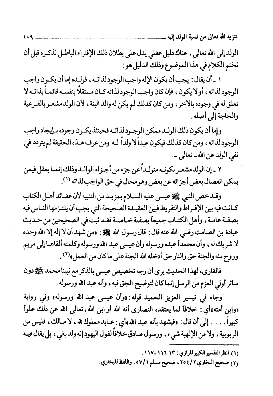 وقالت النصارى عيسى روح الله من ذات الله، وكلمته من ذات الله كما قال: إن هذه الخرقة من هذا الثوب، وقلنا نحن: إن عيسى بالكلمة كان وليس عيسى هو الكلمة. أ. هـ3. وختاماً لهذا نقول: إن الله قد رفع من شأن عيسى وجعله من أولي العزم من الرسل المذكورين في قوله تعالى: {وَإِذْ أَخَذْنَا مِنَ النَّبِيِّينَ مِيثَاقَهُمْ وَمِنْكَ وَمِنْ نُوحٍ وَإِبْرَاهِيمَ وَمُوسَى وَعِيسَى ابْنِ مَرْيَمَ وَأَخَذْنَا مِنْهُمْ مِيثَاقاً غَلِيظاً} 4.