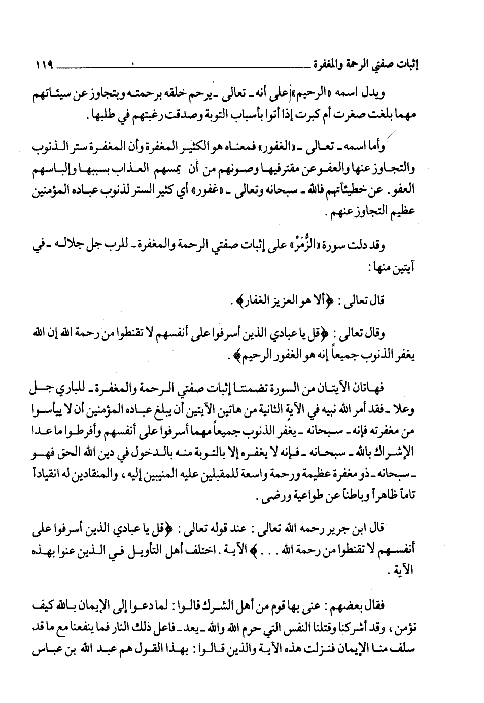 وقال ابن جرير: "وأولى الأقوال في ذلك بالصواب قول من قال: عنى ـ تعالى ـ ذكره بذلك جميع من أسرف على نفسه من أهل الإيمان والشرك لأن الله عم بقوله: {يَا عِبَادِيَ الَّذِينَ أَسْرَفُوا عَلَى أَنْفُسِهِمْ} جميع المسرفين فلم يخصص به مسرفاً دون مسرف.