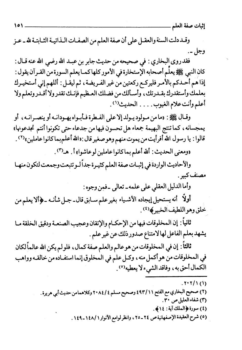 وما قدمناه من الآيات القرآنية وبعض الأحاديث النبوية والأدلة العقلية كلها نصوص قطعية صريحة في إثبات صفة العلم لله ـ تعالى ـ وكلها تشهد ببطلان مذاهب أهل الأهواء في صفة العلم من الفلاسفة والجهمية والمعتزلة الذين ينفون هذه الصفة وغيرها من صفات الله ـ جل وعلا ـ وهي أي: ـ تلك الأدلة ـ صفعة على رؤوس الجهمية الذين يجحدون علم الله السابق بخلقه، ويزعمون أن علمه بأفعال عباده قبل كونها يفضي إلى الجبر وهذا من علامة زيغ القلوب والعياذ بالله؛ إذ العلم صفة كاشفة تكشف الأشياء على ما هي عليه ـ فالباري سبحانه ـ يعلم أزلاً ما يكون من عبده المختار من السعادة والشقاوة وما يحصل له من الغنى والفقر، ومن ناحية تحديد عمره وانقضاء أجله ثم كتب ما يعلمه في اللوح المحفوظ فهو كتب ـ سبحانه ـ لا ليجبر أحداً من عباده على حسب ما كتب بل كتب ـ سبحانه ـ لأنه علم في الأزل ما يكون من العبد بمحض اختياره وإرادته، فعلمه ـ تعالى ـ صفة انكشاف للماضي والحاضر والمستقبل وهو معنى قول أهل العلم عَلِمَ ما كان، وعلم ما يكون، وعلم ما لم يكن أن لو كان كيف كان يكون.