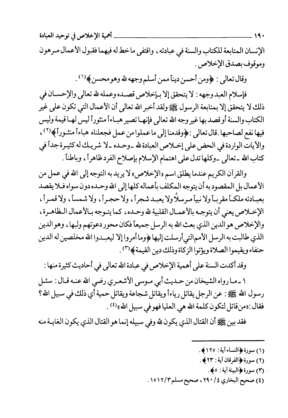 رفع راية الإسلام، أما القتال لأجل مراءات الناس، وإظهار الشجاعة، أو يقاتل حمية كل هذا في سبيل الشيطان، وليس في سبيل الرحمن.