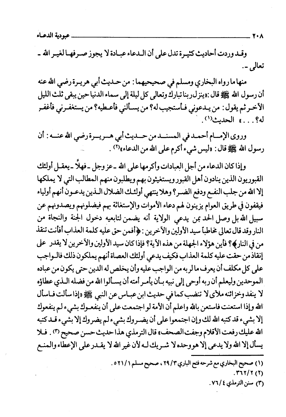 ورفع الضرر وجلب النفع لأن ذلك من خصائص الرب ـ سبحانه وتعالى ـ وقد حصر الرسول صلى الله عليه وسلم العبادة في الدعاء فقال عليه الصلاة والسلام: "الدعاء هو العبادة" 1.