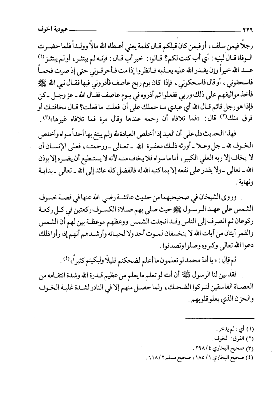 فهذا الحديث تضمن شدة خوف النبي صلى الله عليه وسلم ـ من الله تعالى ـ فلما تضمنت السور المذكورة في الحديث كثيراً من أهوال يوم المعاد، وما نزل بالأمم التي خلت من قبل أمة محمد من النوازل أخذت تلك السور من النبي صلى الله عليه وسلم مأخذها حتى ظهر فيه الشيب قبل وقته الذي فيه فينبغي لكل مسلم أن لا يخاف إلا الله تعالى الذي بيده أزمة الأمور جميعها، ويسعى في تحقيق عبودية الخوف ويجعلها خالصة لله ـ تعالى ـ امتثالاً لأمر الباري ـ سبحانه ـ