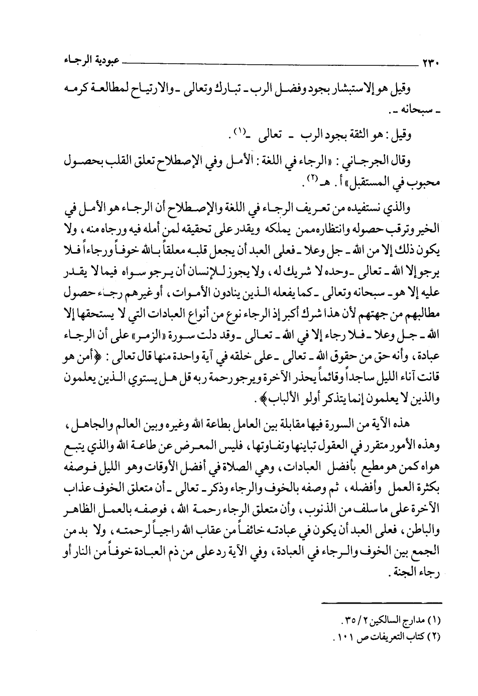فبين لنا صلى الله عليه وسلم أن نعبد الله ـ تعالى ـ خوفاً من عقابه وطمعاً في رحمته، وقال عبد الله بن عباس رضي الله عنهما: "من أحب أن يهون الله عليه الوقوف يوم القيامة فليره الله في ظلمة الليل ساجداً وقائماً يحذر الآخرة ويرجو رحمة ربه" 2.