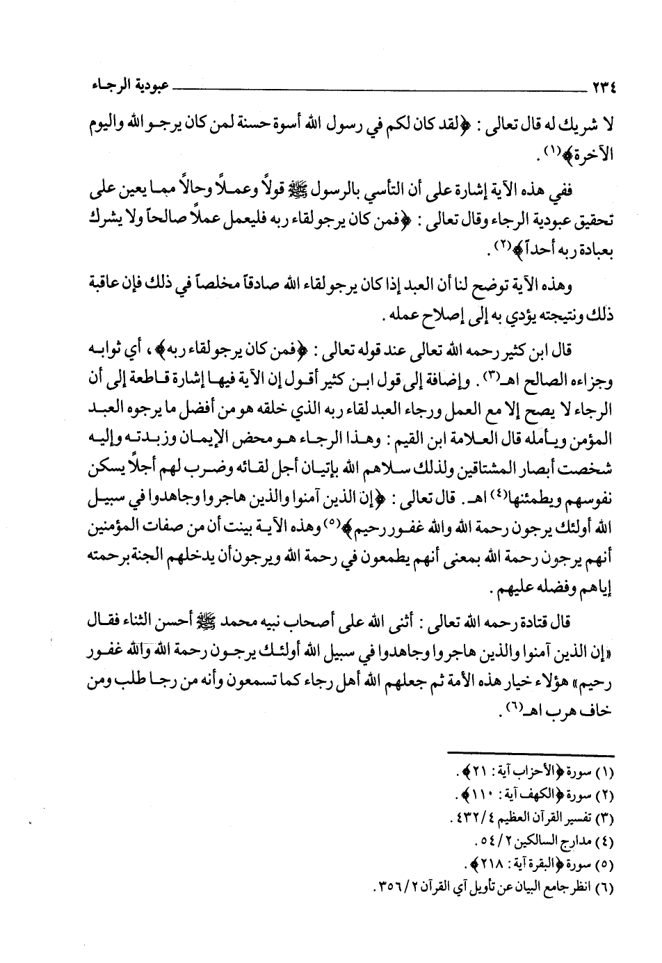 وقد أخبرنا العليم الخبير بأن خواص عباده الذين كان أهل الشرك يزعمون أنهم ما كانوا يعبدونهم إلا رجاء أن يقربوهم إلى الله زلفى أنهم كانوا من أشد الناس تحقيقاً لعبودية الرجاء وعبودية الخوف قال تعالى: {قُلِ ادْعُوا الَّذِينَ زَعَمْتُمْ مِنْ دُونِهِ فَلا يَمْلِكُونَ كَشْفَ الضُّرِّ عَنْكُمْ وَلا تَحْوِيلاً * أُولَئِكَ الَّذِينَ يَدْعُونَ يَبْتَغُونَ إِلَى رَبِّهِمُ الْوَسِيلَةَ أَيُّهُمْ أَقْرَبُ وَيَرْجُونَ رَحْمَتَهُ وَيَخَافُونَ عَذَابَهُ إِنَّ عَذَابَ رَبِّكَ كَانَ مَحْذُوراً} 1.