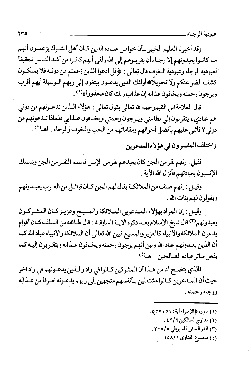 والمشركون زين لهم الشيطان توجيه حق الله من الدعاء والرجاء وطلب الشفاعة لأولئك الصالحين بشبهة أنهم يقربونهم إلى الله زلفى ولم يشعروا لفرط جهلهم أنهم يزدادون بعداً عن الله بعمله ذلك، وهذا المزلق الذي كان سبباً في شرك المشركين الأولين وقع فيه الكثير من جهلة المسلمين اليوم فإنهم يرجون من يسمونهم بالأولياء كما يرجون الله ويدعونهم كما يدعون الله تعالى في الشدة والرخاء بل ويخافونهم كما يخافون الله تعالى وصرفوا لهم من التعظيم الذي لا يكون إلا لله الشيء الذي يجعل العاقل حيران فإنه وصل بهم الغلو في الصالحين إلى حد أنهم عبدوهم مع الله جل وعلا، بدعوى أنهم يحبونهم ويقدرونهم، ولقد انتشرت الأضرحة في أكثر البلدان الإسلامية والذي يصل إلى هذه البلدان يرى الجم الغفير من المسلمين عاكفين حول تلك القبور والأضرحة زاعمين أنهم يلتمسون البركة من أصحابها وأحياناً يصل بهم هذا التبرك إلى أنهم يطوفون بها وبعض الجهلة يسجد على عتبة الضريح والمصيبة كل المصيبة أنه يوجد حول تلك الأضرحة بعض الأشخاص من شياطين الإنس الذين يزينون للوافدين ذلك العمل من الطواف والسجود والتبرك الذي لا يجوز صرفه لغير الله.